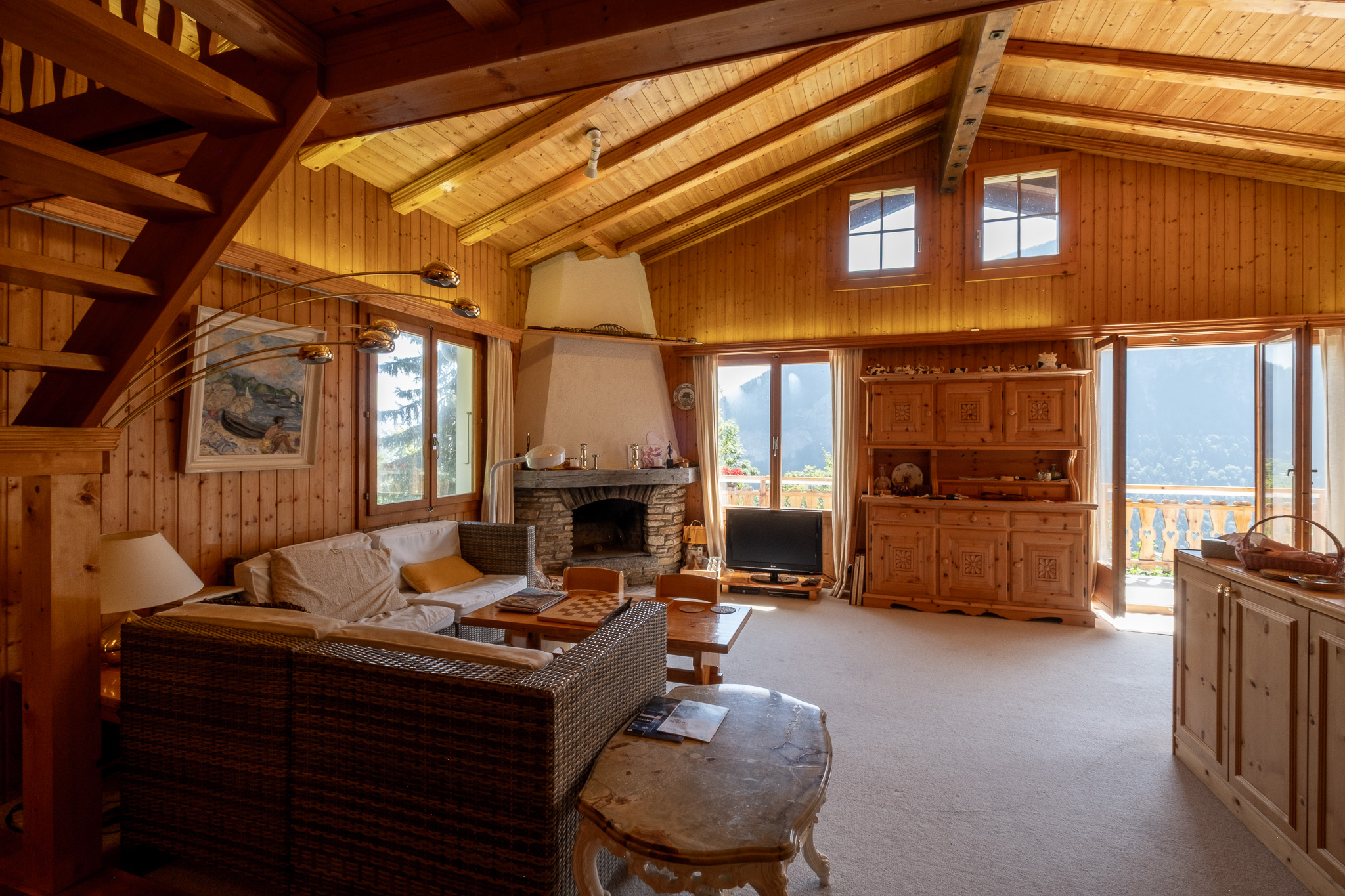 Located at the end of a quiet cul-de-sac, with no less than 2583m² of private land, this charming Alpine chalet offers rare privacy, sweeping views over the Trient Valley and year-round accessibility. The highlight is the spacious south-facing terrace, ideal for long sunny afternoons. The adjoining conservatory extends the living area and brings light and mountain views into the house. With 4 bedrooms and 2½ bathrooms, warm wood accents, large windows and a practical floor plan, it is ideal as both a quiet holiday home and a comfortable primary residence. Three private parking spaces directly in front of the house complete the comfort — just a few minutes from the village and the Les Marécottes ski area.